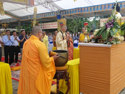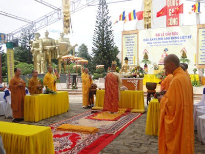 Chiều cùng ngày lúc 14h00 dưới sự sám chủ của ĐĐ Thích Hải Trung, trụ trì chùa Liên Trì gần 30 Tăng Ni và hàng trăm Phật tử trong toàn tỉnh đã đăng đàn tụng kinh Từ Bi Thủy Sám và tuyên sớ cầu siêu chư anh linh anh hùng liệt sỹ.